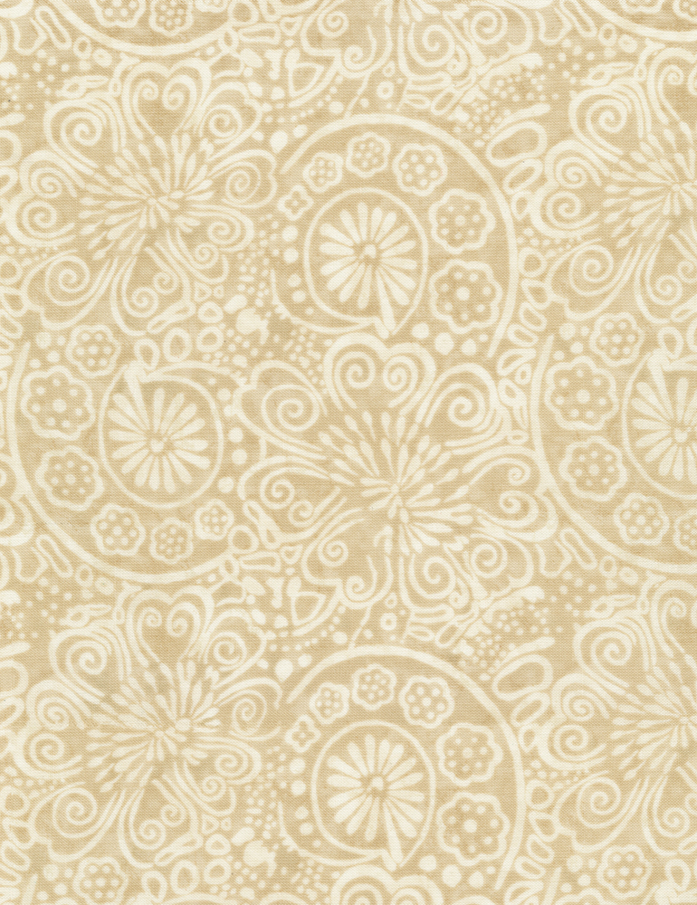 Cotton Print Yarmulkes Flower Scrolls - CREAM