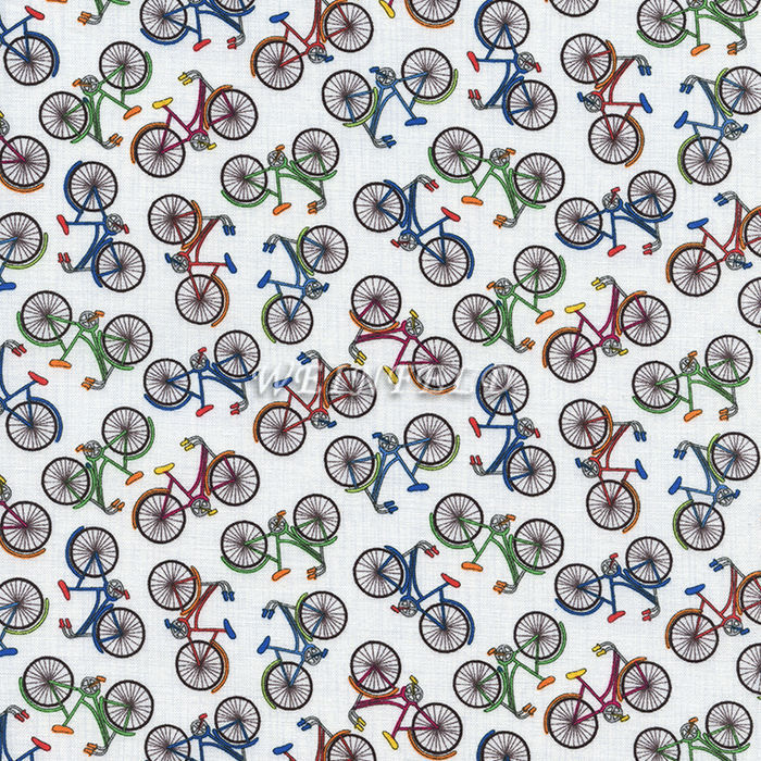 Cotton Print Yarmulkes MINI BICYCLES - WHITE