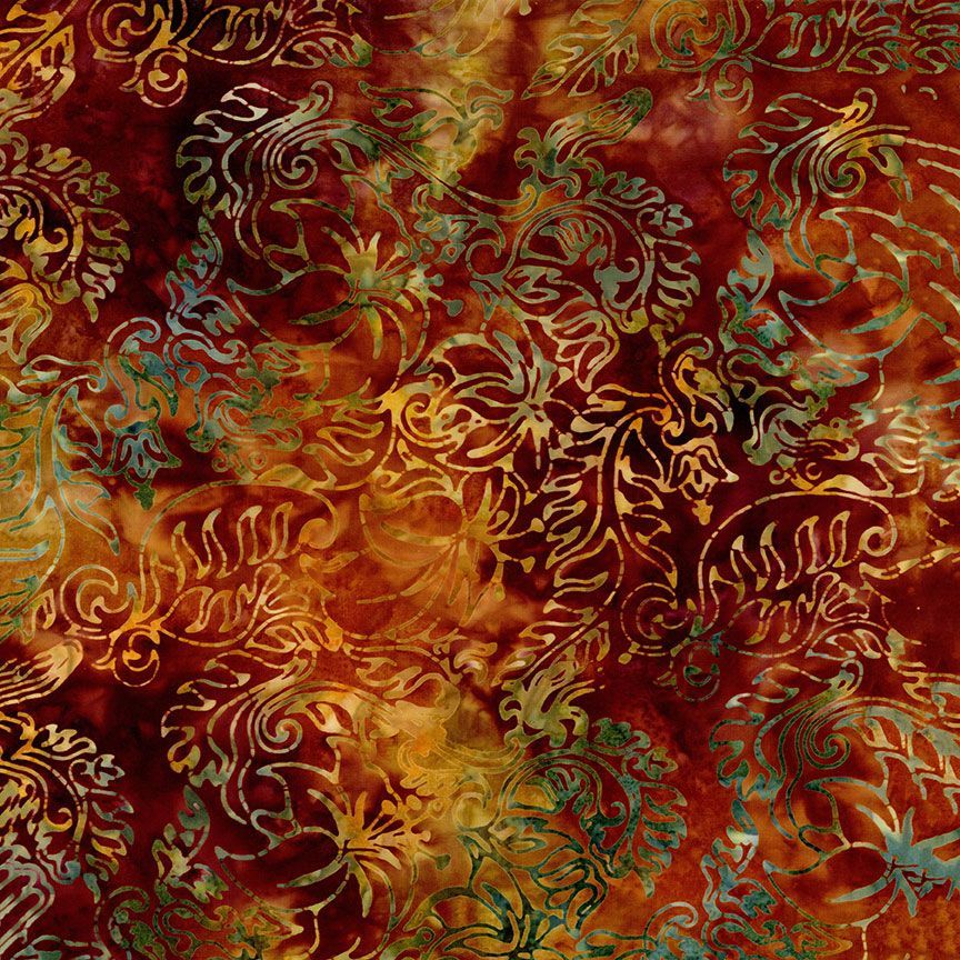 Cotton Print Yarmulkes STAMPED TROPICAL LEAVES - HARVEST