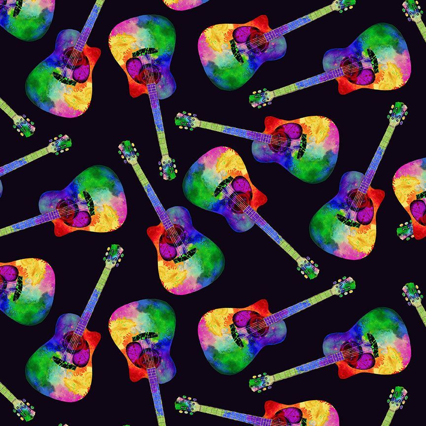 Cotton Print Yarmulkes TOSSED PAINTED GUITAR