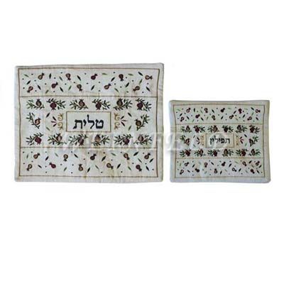 Embroidered Tallit and Tefillin Bag - Pomegranates light