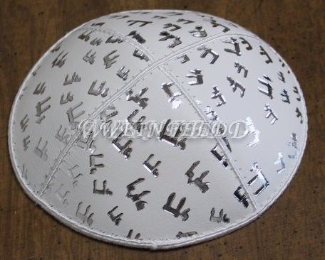Genuine Suede Yarmulkas - WHITE Metallic Embossed - SILVER Metalic Chai on WHITE