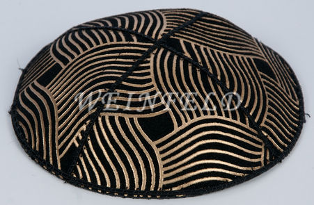 Genuine Suede Yarmulke - Metallic Embossed - GOLD METALIC WAVES