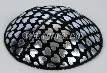 Genuine Suede Yarmulke - Metallic Embossed - SILVER METALIC HEARTS