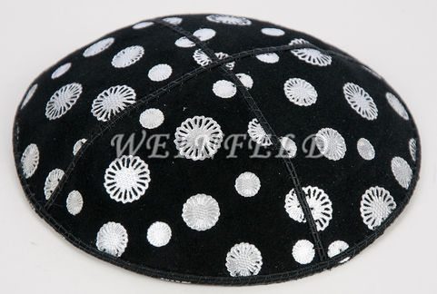 Genuine Suede Yarmulke - Metallic Embossed - SILVER METALIC SUNFLOWERS