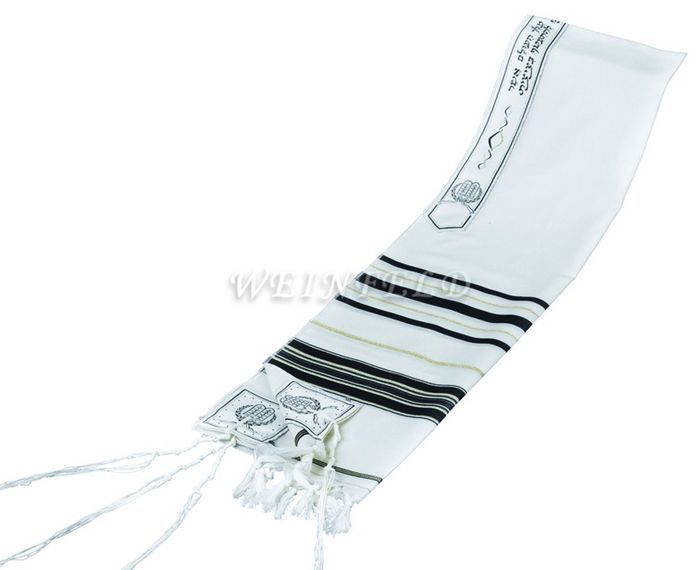 Lurex Wool Tallit in WHITE and SILVER Stripes - Tallit blessing on atarah neckband