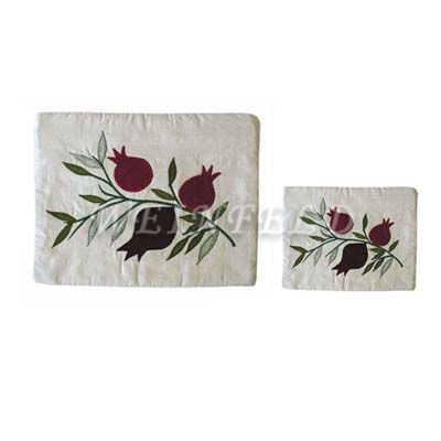 Embroidered Tallit and Tefillin Bag - Pomegranates in WHITE