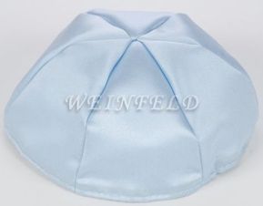 Satin Yarmulkes 6 Panels - Lined - Satin LIGHT BLUE With BURGUNDY Rim. Best Quality Bridal Satin