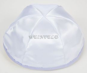 Satin Yarmulkes 6 Panels - Lined - WHITE Satin With LAVENDER Rim. Best Quality Bridal Satin